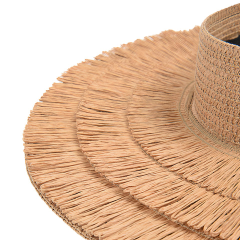 Son tressage délicatement ouvert dessine un motif léger et distinctif qui donne à ce chapeau un caractère affirmé tout en assurant sa fonction de protection solaire.